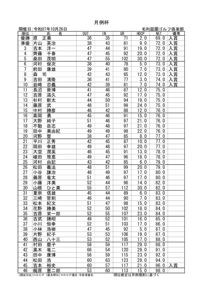 2025.10.26 月例杯成績表 Uncategorized 2025.11.23 Warning: Undefined array key "file" in /home/r4877795/public_html/mohrigardengolf.com/wp-includes/media.php on line 1774